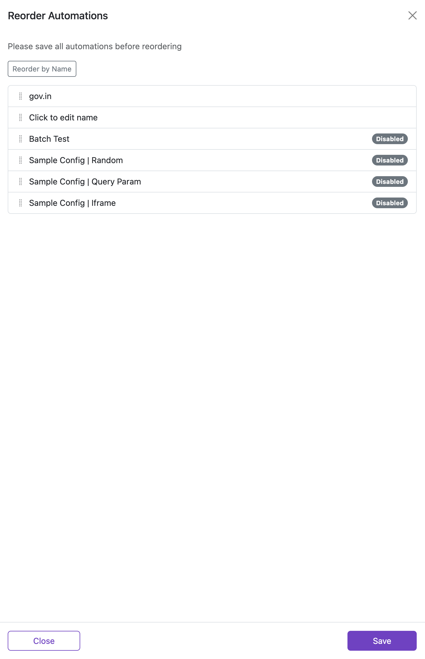Reorder Automations