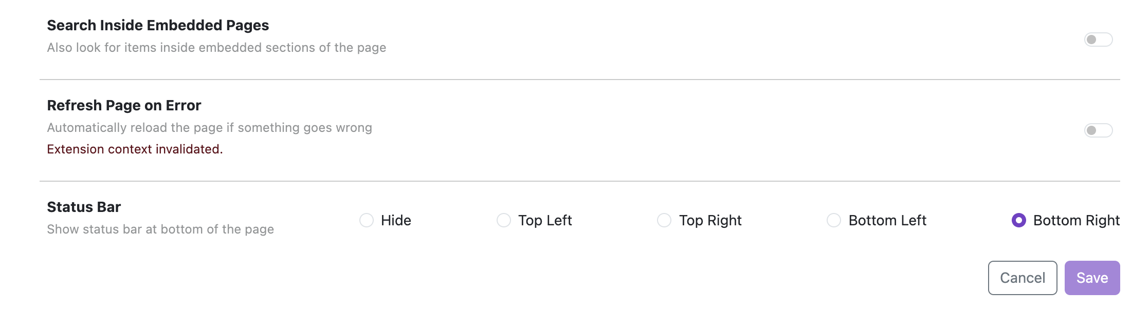 If the extension context is invalidated (for example, after the extension is updated while the page is open), the page reloads automatically to re-establish the connection.