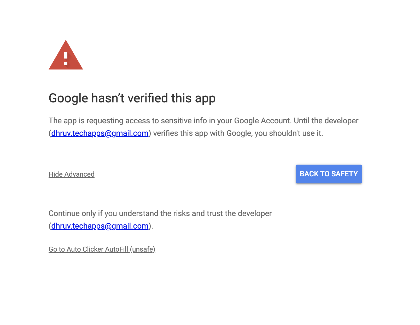 Google may show a warning for apps not yet fully verified for production. To proceed during development/testing, click