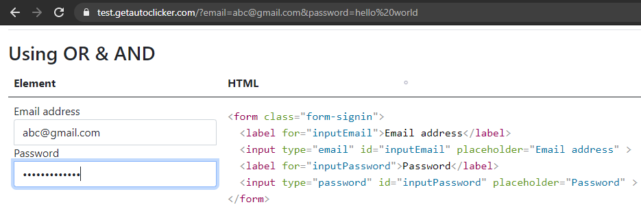 <query::param> | Replace all occurrences of <query::param> with the value of query parameter param from the URL. Useful for templates. | Hello <query::name>! → Hello John! (if ?name=John in URL) |